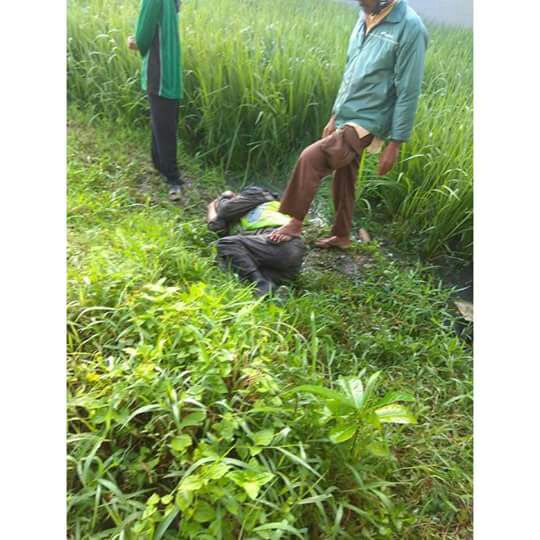 Warga segera datang dan melampiaskan amarah mereka kepada pelaku. Pelaku dihajar di pematang sawah hingga babak belur dan basah kuyup.