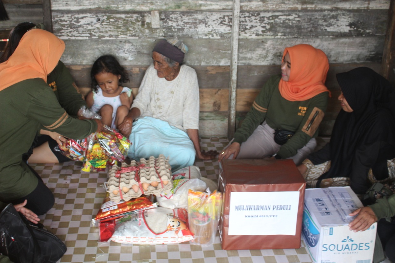 Mulawarman Peduli, Janda Tua asal Tanjung Jumlai Mendapatkan Sembako Dari Ibu Persit Kodim 0913 PPU