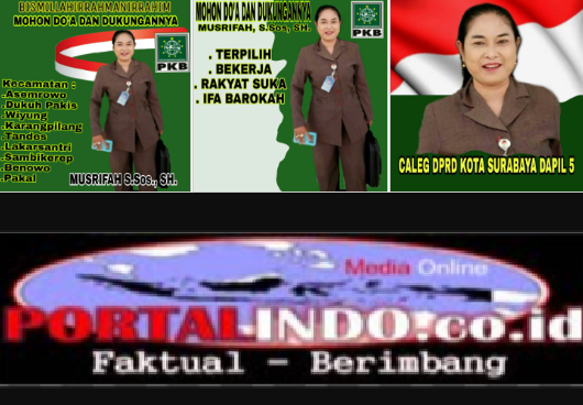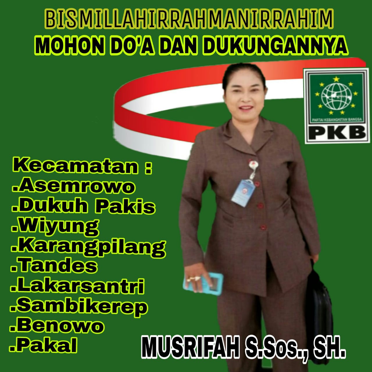 Musrifah.S.Sos.SH Yang Merupakan Caleg DPRD Kota Surabaya Dapil 5 Dari Partai PKB memohon Do’a Restunya Pada Seluruh Masyarakat Disurabaya Terkhususnya Di Daerah Pilihanya (Dapil) 5 agar Kiranya Masyarakat Di Dapil 5 Memberikan Dukungan Penuh Kepada kami.(Red***)