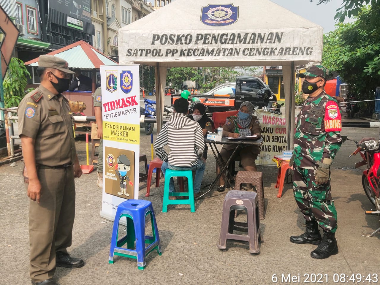 Hari ini,  Kamis 6 Mey 2021  Koramil 04/CK bersama Polri, Satpol PP dan Dishub menggelar operasi yustisi di Jalan Hawai, Kel. Cengkareng Timur, Kec. Cengkareng Jakarta Barat.