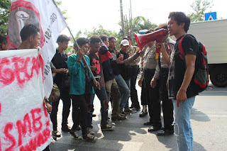 Sekitar Pukul 14.02 wita. Para Mahasiswa Bergesekan dengan Aparat Kepolisian, yang berjaga di lokasi Aksi. Melaran Mahasiswa Menutup jalan.