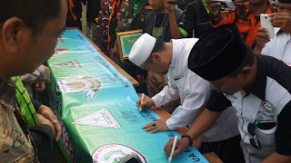 Selanjutnya acara tersebut dilanjutkan pembacaan Deklarasi Pemilu Damai 2019 dan penandatangan bersama Deklarasi Pemilu Damai 2019 oleh semua Ormas yang dilanjutkan pemberian Piagam Deklarasi Pemilu Damai 2019 oleh Bpk. H. Mudjamil.(Team)
