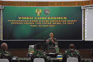 PORTALINDO.CO.ID, JAKARTA, Pangdam XVII/Cenderawasih Mayjen TNI Ignatius Yogo Triyono, M.A. mendampingi orang tua/wali Calon Taruna Akmil TA 2021 dalam mengikuti pengarahan Kasad Jenderal TNI Andika Perkasa melalui Video Conference di Aula Tonny A Rompis, Makodam XVII/Cenderawasih. Rabu (23/6/2021).