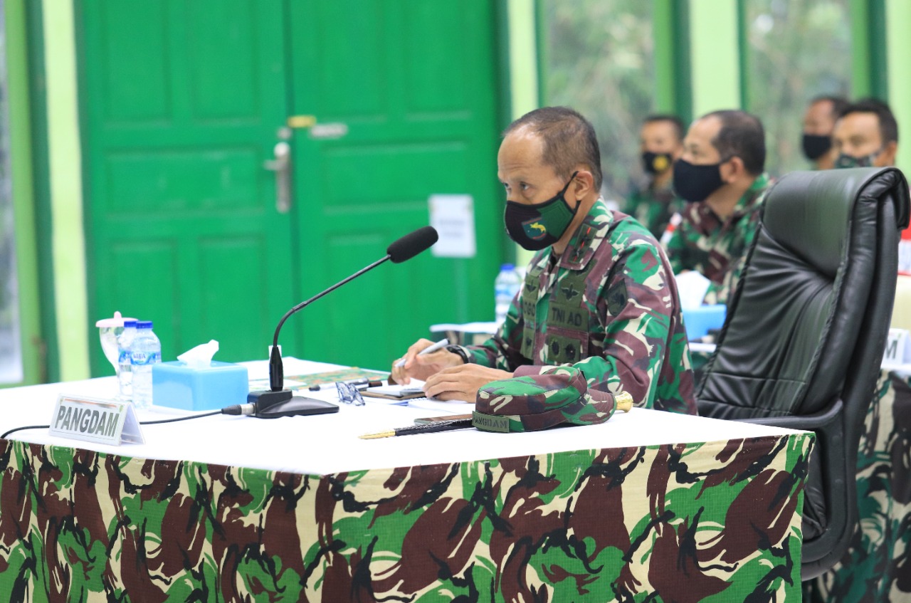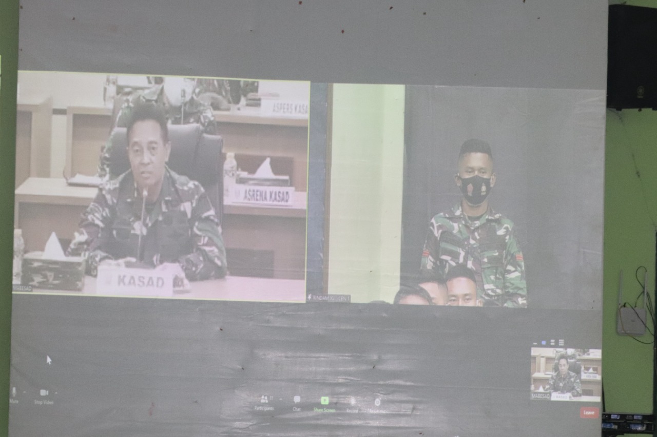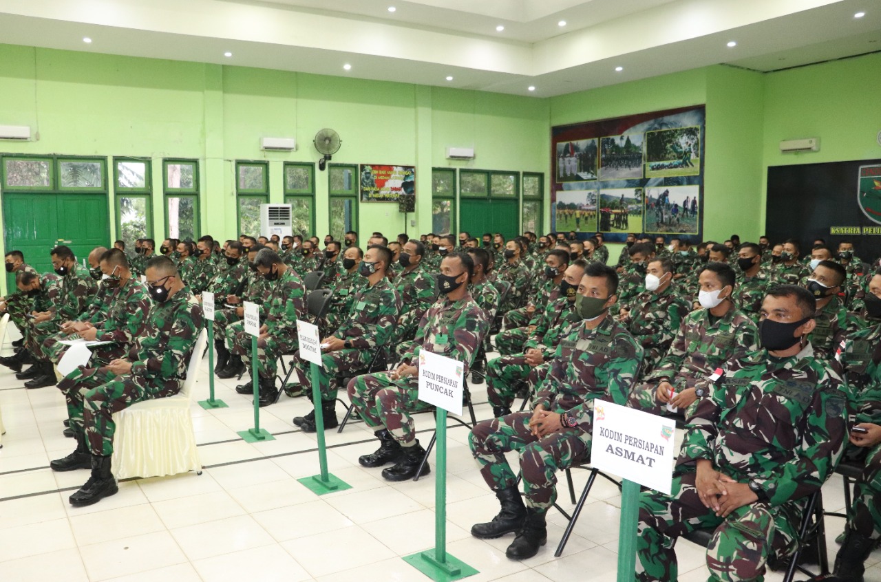 PORTALINDO.CO.ID, JAKARTA – Panglima Kodam XVII/Cenderawasih Mayjen TNI Ignatius Yogo Triyono, M.A. mengikuti kegiatan Video Conference dengan Kasad Jenderal TNI Andika Perkasa dalam rangka memberikan pengarahan dan melaksanakan pengecekan kesiapan kepada Personel Satuan BKO Kodim Persiapan, bertempat di Gedung Serbaguna Rindam XVII/Cenderawasih, Rabu (7/7/2021).