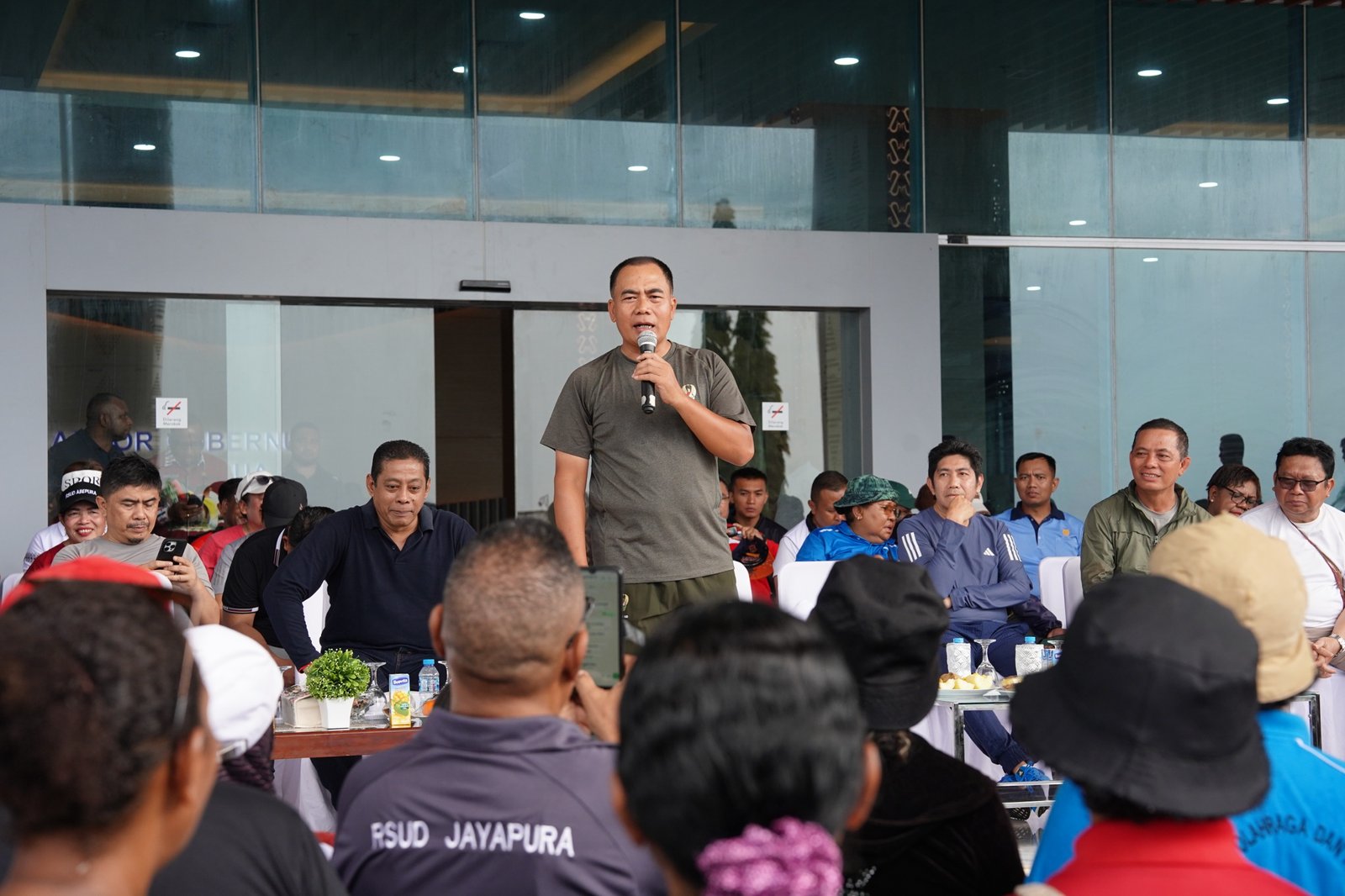Kegiatan ini dihadiri para ASN dan prajurit TNI Polri dengan rute mulai dari Lapangan Kantor Gubernur Papua, GOR Cenderawasih, komplek Ruko Dok II dan kembali finish di lapangan Kantor Gubernur Papua.
