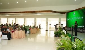 PORTALINDO.CO.ID | Pangdam XVII/Cenderawasih Mayjen TNI Rudi Puruwito, S.E., M.M didampingi Ketua Persit Kartika Chandra Kirana Daerah XVII/Cen Ny. Agustin Rudi Puruwito memimpin acara Serah Terima Jabatan (Sertijab), Penyerahan Jabatan, dan Tradisi Korps Pejabat Kodam XVII/Cenderawasih di Makodam XVII/Cen, Senin (23/9/2024).