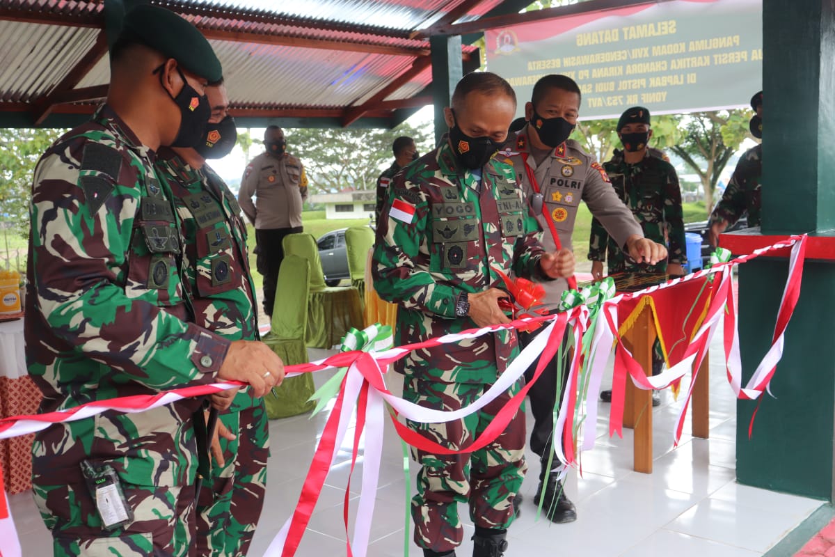 Setelah melaksanakan kunjungan kerja di Distrik Sugapa, Kabupaten Intan Jaya, Pangdam XVII/Cenderawasih Mayjen TNI Ignatius Yogo Triyono, M.A beserta rombongan meresmikan Lapangan Tembak Pistol “Budi Sastra” yang berada di lingkungan Asrama Yonif RK 753/AVT Kabupaten Nabire.
