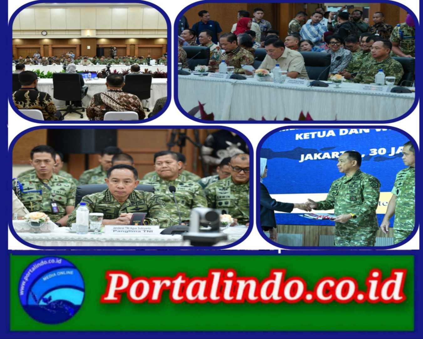 Portalindo.co.id = JAKARTA – (Puspen TNI). Panglima TNI Jenderal TNI Agus Subiyanto bersama Kepala Staf TNI Angkatan Darat Jenderal TNI Maruli Simanjuntak, Kepala Staf TNI Angkatan Laut Laksamana TNI Muhammad Ali, serta Kepala Staf TNI Angkatan Udara Marsekal TNI Mohamad Tonny Harjono mendampingi Menteri Pertahanan Republik Indonesia Sjafrie Sjamsoeddin menghadiri Entry Meeting Pemeriksaan atas Laporan Keuangan Kementerian Pertahanan Tahun Anggaran 2025 sekaligus Penyerahan Laporan Hasil Pemeriksaan (LHP) Semester II Tahun 2025 oleh Badan Pemeriksa Keuangan Republik Indonesia (BPK RI), di Kantor BPK RI, Jakarta Pusat, Jumat (30/1/2026).