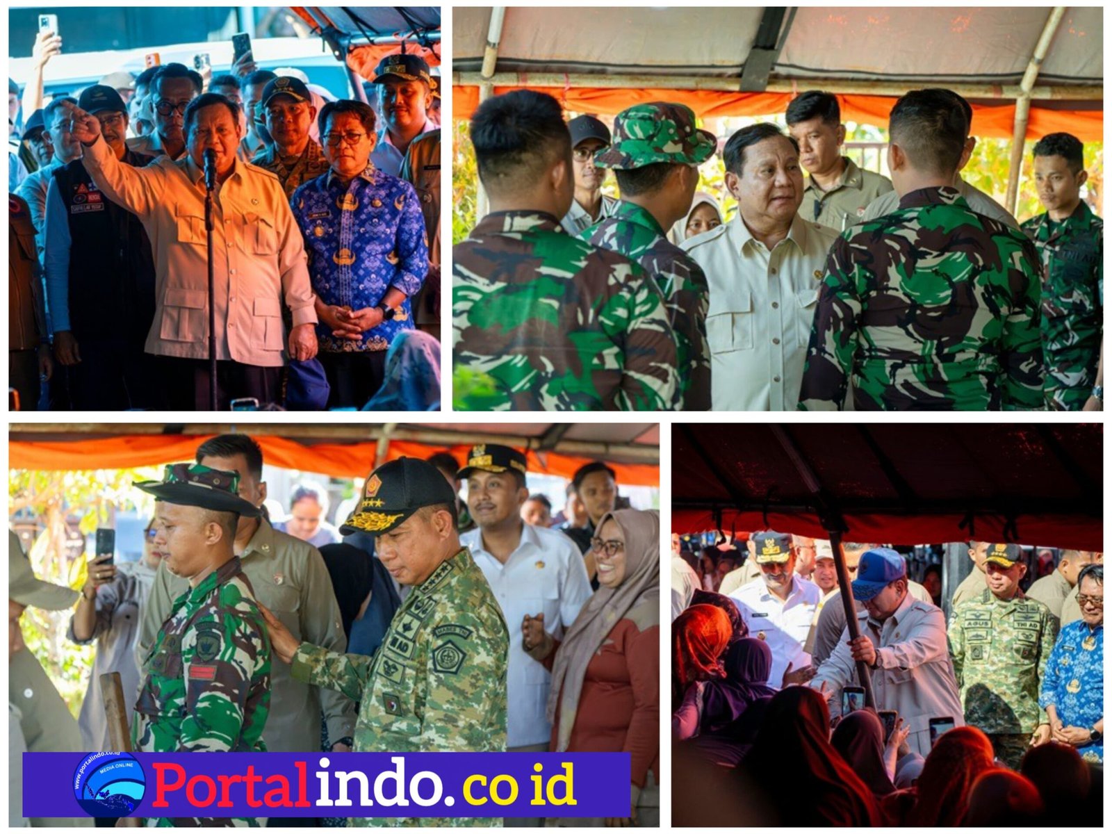 Portalindo.co.id | (Puspen TNI). Panglima TNI Jenderal TNI Agus Subiyanto mendampingi Presiden RI Prabowo Subianto meninjau langsung posko pengungsian korban banjir dan dapur lapangan di Perumahan Kasai Permai, Kabupaten Padang Pariaman, Provinsi Sumatra Barat, Senin (1/12/2025). Kedatangan Presiden bersama Panglima TNI dan rombongan disambut hangat para pengungsi yang sejak beberapa hari terakhir harus meninggalkan rumah akibat banjir yang melanda wilayah tersebut.