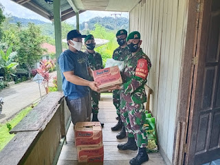 Dikatakan Dansatgas, bantuan sembako berupa 41 karung beras, 82 kg gula, 82 bungkus teh celup, 41 liter minyak goreng, dan 738 bungkus indomie itu, didistribusikan  oleh 15 personel Pos Long Pujungan yang dipimpin Danki SSK 2 Kapten Inf Didik Prasetiyo dengan mendatangi rumah warga yang terdampak banjir di tiga desa yang berada Kecamatan Pujungan, yaitu Desa Long Pujungan, Desa Long Paliran dan Desa Long Aran.