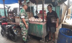 Dalam upaya mengantisipasi situasi tersebut, Babinsa melakukan pemantauan langsung di pasar guna mengetahui kondisi terkini harga sembako dan situasi keamanan