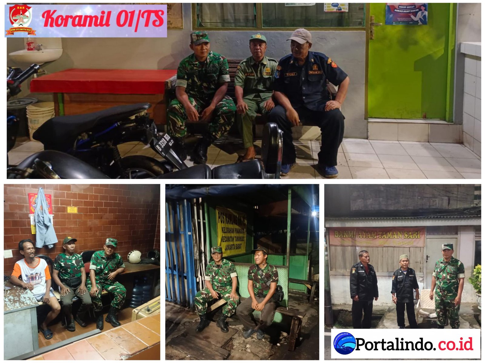 Portalindo.co.id | Jakarta Barat, Kodam Jaya_ Kegiatan patroli malam menjadi salah satu langkah preventif untuk menekan potensi tindak kriminalitas, terutama pada jam-jam rawan, dan untuk menjaga ke kondusifan wilayah melalui Babinsa Serka Rusnanto, Koramil 01/Tamansari melaksanakan Patroli Siskamling dan Pam Swakarsa. Minggu malam, (30/11/2025).