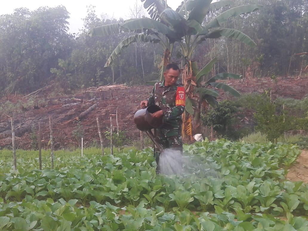 PORTALINDO.CO.ID, PENAJAM – Dalam rangka mendukung program ketahanan pangan, Babinsa Koramil 0913-01/Penajam Kodim 0913/Penajam Paser Utara (PPU) Koptu Gampang melaksanakan kegiatan produktif pertanian berupa budidaya tanam sayuran, di pekarangan lahan tidur samping rumah yang bertempat di Jln. Silkar RT 07 No 30 Desa Giripurwa, Kecamatan Penajam, Kabupaten PPU, Prov. Kaltim, Rabu (4/9/2019).