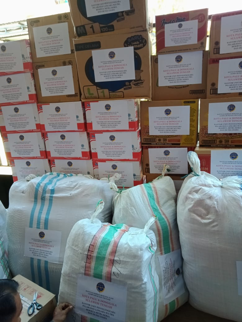 “Adapun bantuan yang akan disalurkan kepada korban gempa dan tsunami di Donggala Palu Sulawesi Tengah adalah Sarung 2 coly, barang campuran 2 coly, selimut 2 coly, air mineral 135 dos, mie instant 45 dos, biskuit 14 dos dan pampers anak 2 dos serta pembalut wanita 2 dos,”