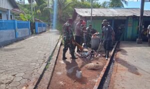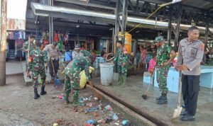 PORTALINDO.CO.ID | Yapen – Dalam rangka menjaga kebersihan lingkungan pasar tradisional yang ada diwilayah teritorialnya, Koramil 1709-04/Ansus Kodim 1709/Yawa bersama Polsek Ansus dan masyarakat sekitar, melaksanakan Karya Bakti pembersihan lingkungan di Pasar Tradisional Ansus, Distrik Yapen Barat, Kabupaten Kepulauan Yapen, Selasa (24/9/2024).