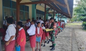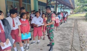 PORTALINDO.CO.ID | Timika ~ Babinsa Koramil 1710-02/Timika Serka Philipus Paringgi terlihat sedang memantau atau monitoring kegiatan penerimaan siswa baru tingkat SMP yang beralamat di SMPN 2 Timika, Kel. Otomona, Distrik Mimika Baru, Kabupaten Mimika, Rabu (26/6/2024).
