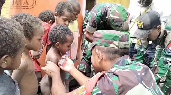 Babinsa Koramil 1703-02/Tigi Serka Suherman kengatakan dalam kegiatan tersebut diharapkan dapat membantu memelihara dan meningkatkan kesehatan diri terutama kesehatan gigi dan mulut kepada anak-anak di Papua.