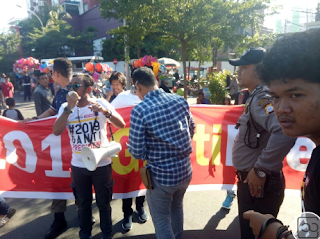 Pasalnya puluhan pemuda yang mengatas namakan Korps Indonesia terkait aksi sosialisasi buka lapak penjualan kaos 2019 Ganti Presiden di Car Free Day (CFD) Pantai Losari, Jalan Raya Penghibur Kota Makassar diduga mendapat pemukulan dari petugas.