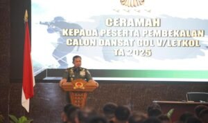 Portalindo.co.id | Bandung _ Komandan Kodiklatad Letjen TNI Mohamad Hasan diwakili Wadan Kodiklatad Mayjen TNI Izak Pangemanan, M.Tr.(Han) mendampingi Kepala Staf Angkatan Darat (Kasad) Jenderal TNI Maruli Simanjuntak, M.Sc., memberikan pembekalan kepada 176 calon Komandan Satuan (Dansat) Golongan V berpangkat Letnan Kolonel (Letkol) dan 133 siswa Pendidikan Lanjutan Perwira (Diklapa) Gelombang II yang bertempat di Graha Yudha Wastu Pramukha Pussenif. Kamis (14/8/2025).