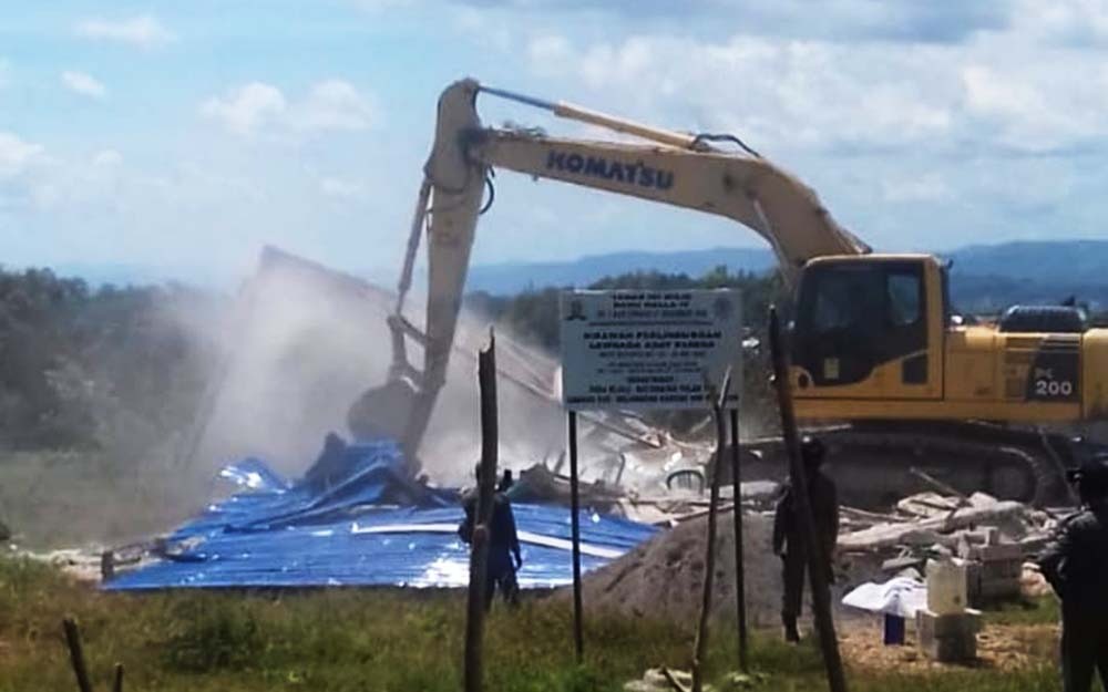 PORRALINDO.CO.ID, KOPI, Kupang – Pemerintah Kabupaten Timur Tengah Selatan (Pemkab TTS) melakukan eksekusi penggusuran rumah warga milik Robi Damianus Mella menggunakan alat berat, Selasa (13/4/21). Penggusuran dipimpin Kepala Satpol-PP, Yopi Magang, atas perintah Bupati TTS, Egusem Piter Tahun.
