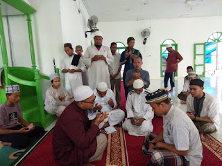 Ustadz Abdul Waris saat memberikan tauziahnya, menyampaikan pesan kepada Muhammad Abdullah yang intinya agar terus belajar mendalami agama islam dan memperdalam ilmu tauhid. “Kita harus menjalankan perintah Allah dan menjauhi laranganNya.(Wardi)