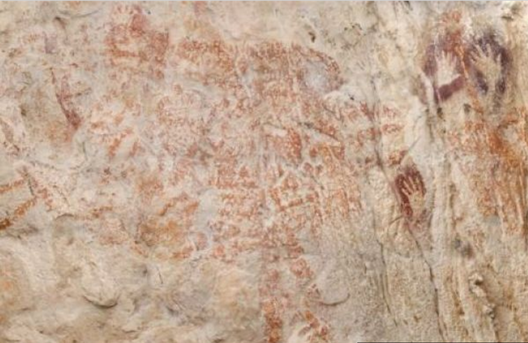 Hasil penelitian para ahli itu sudah dimuat di Jurnal Nature. Tim peneliti mengungkapkan bawah perjalanan menuju situs sangat sulit, karena merupakan hutan lebat dan harus memanjat bukit dengan kemiringan yang bervariasi. Peneliti menemukan 300 cap tangan dan 20 gambar hewan dan manusia di dalam gua.