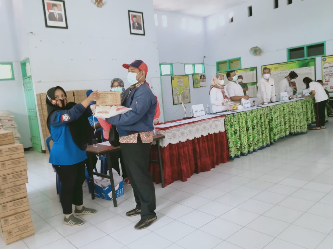 BPNT di salurkan di gedung balai serba guna Kelurahan Balongsari.