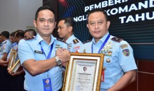 Portalindo.co.id | Jakarta – Pen Koopsud II. Panglima Komando Operasi Udara II (Pangkoopsud II) Marsekal Muda TNI Doni Hasoloan S. menyerahkan penghargaan kepada satuan dan personel berprestasi dalam Rapat Kerja Teknis (Rakernis) Koopsud II yang digelar di Sekolah Komando Kesatuan Angkatan Udara (Sekkau), Halim Perdanakusuma, Jakarta (6/2/2025).