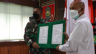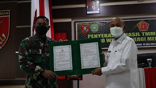 PORTALINDO. CO.ID – TAPIN. Penutupan program Tentara Manunggal Membangun Desa (TMMD) ke 111 Kodim 1010 Tapin TA 2021, ditandai dengan penyerahan hasil TMMD dari Danrem 101/Antasari kepada Bupati Tapin yang diwakilkan Sekda Kabupaten Tapin H. Masyraniansyah. Penyerahan hasil TMMD tersebut, dilakukan di Aula Parikesit Kodim 1010/ Tapin, Rabu (14/7/2021).