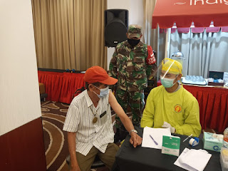 PORTALINDO.CO.ID, Jakarta – Anggota Koramil 04 Cengkareng Kodim 0503 Jakarta Barat, Babinsa Pelda Wisnu melakukan pengamanan kegiatan Suntik Vaksin Sinovac untuk Lansia yang dilaksanakan di Room Turmaline Hotel Royal Jalan Boulevard, Rt. 06/Rw. 14, Kel. Cengkareng Timur, Kec Cengkareng Jakarta Barat. Senin (15/3/21)