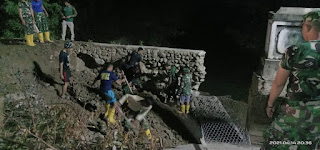 Selain pengerjaan jembatan di Rade, personel Yonzikon 13/KE juga mengerjakan perbaikan jembatan di Desa Woro yang salah satu sisi jembatan dan setengah badan jembatan habis tergerus arus deras sungai akibat banjir bandang.