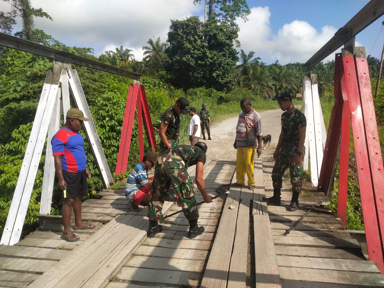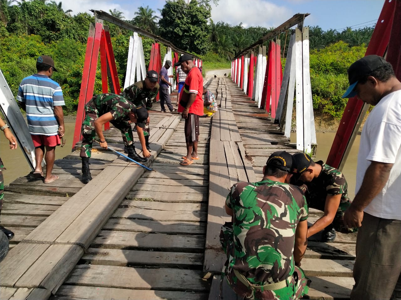 “Melihat situasi seperti ini, Satgas berinisiatif dengan mengajak masyarakat secara swadaya untuk memperbaiki jembatan tersebut. Inisiatif tersebut mendapat tanggapan positif dari warga, bahkan sangat senang dan antusias, “sambungnya.