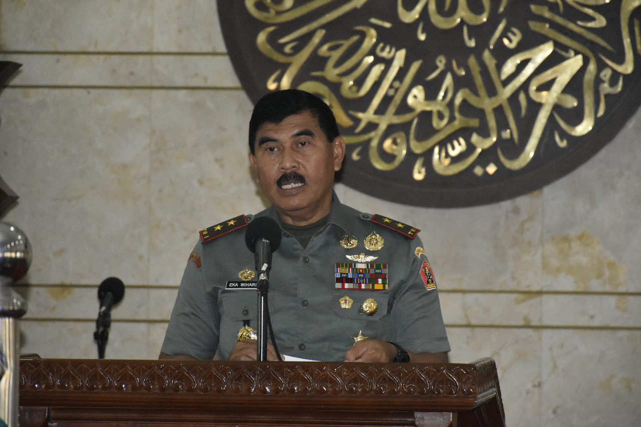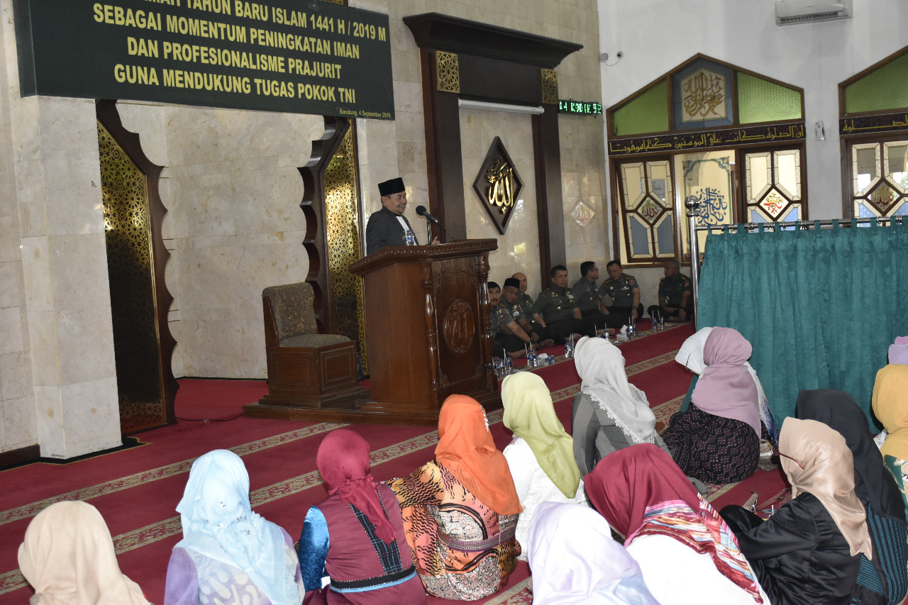 Portalindo.co.id, Bandung —Wadan Kodiklatad Mayjen TNI Eka Wiharsa pimpin acara peringatan Tahun Baru Islam 1 Muharram 1441 Hijriyah di Masjid Junudurrahaman Makodiklatad jalan aceh no 5, Bandung, Rabu (4/9/2019).