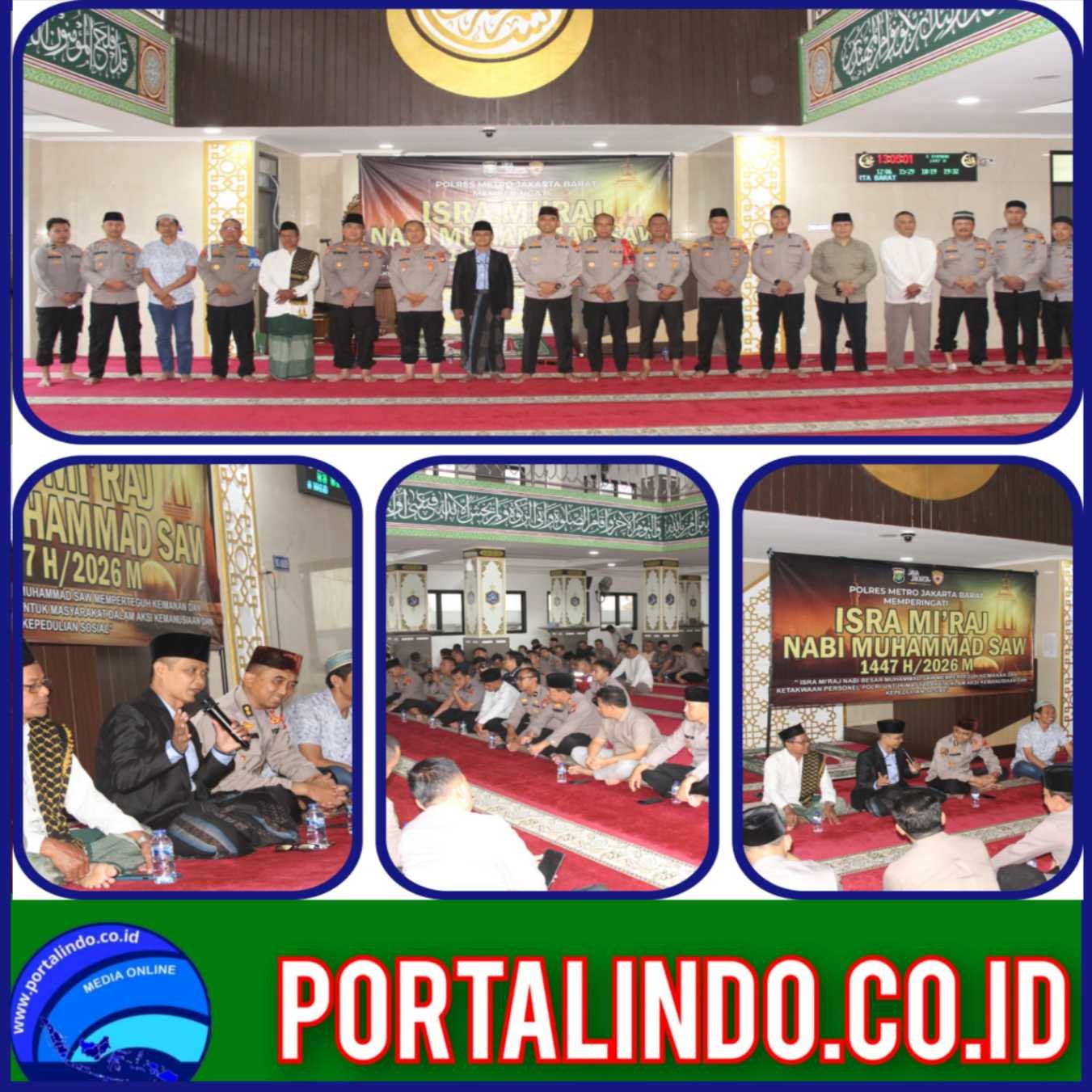 Portalindo.co.id = JAKARTA,// Dalam rangka memperingati Isra Mi’raj Nabi Muhammad SAW 1447 Hijriah/2026 Masehi, Polres Metro Jakarta Barat menggelar kegiatan sholat Dzuhur berjamaah yang dilanjutkan dengan tausiyah keagamaan, bertempat di Masjid Jami Al-Istiqomah Polres Metro Jakarta Barat, Kamis (22/1/2026).