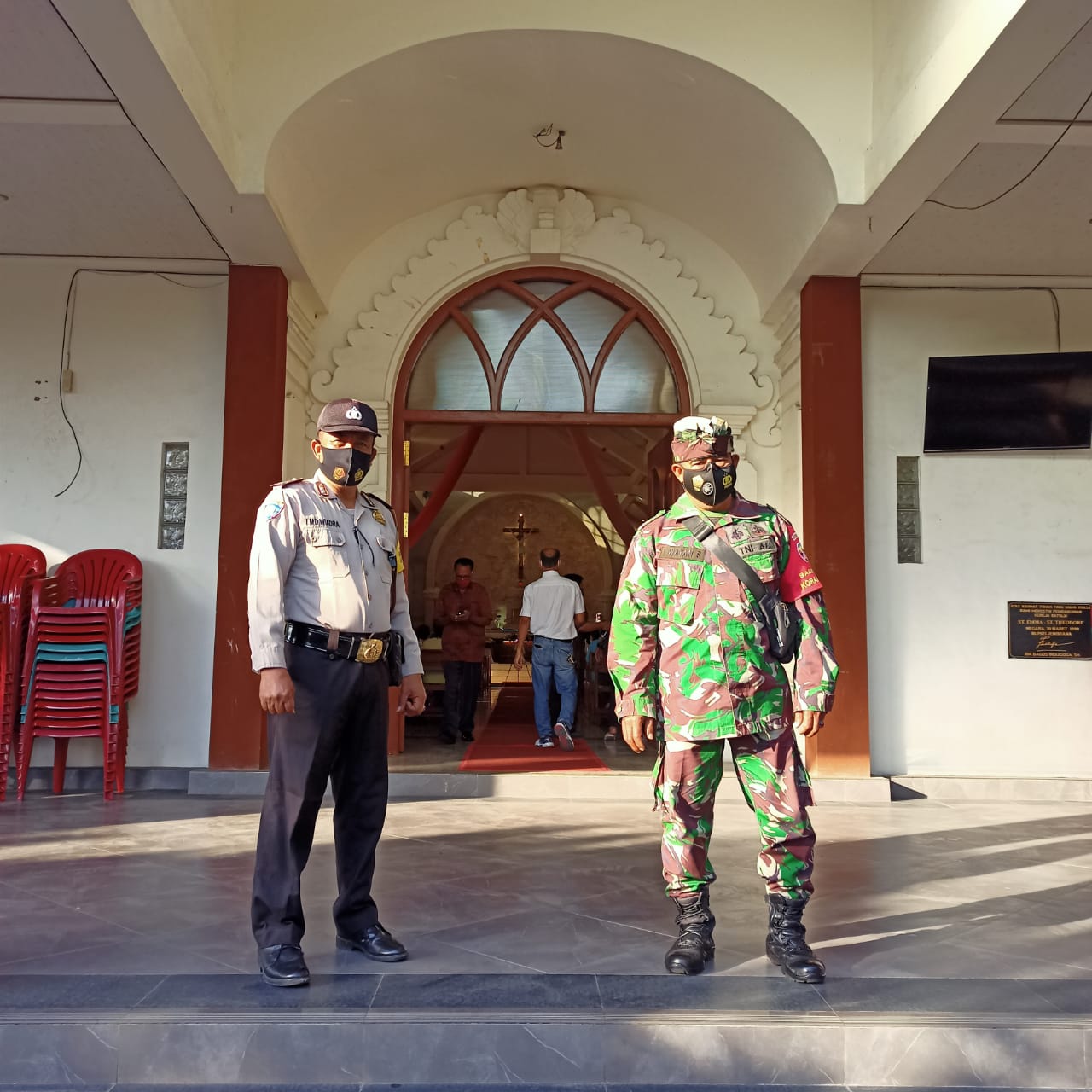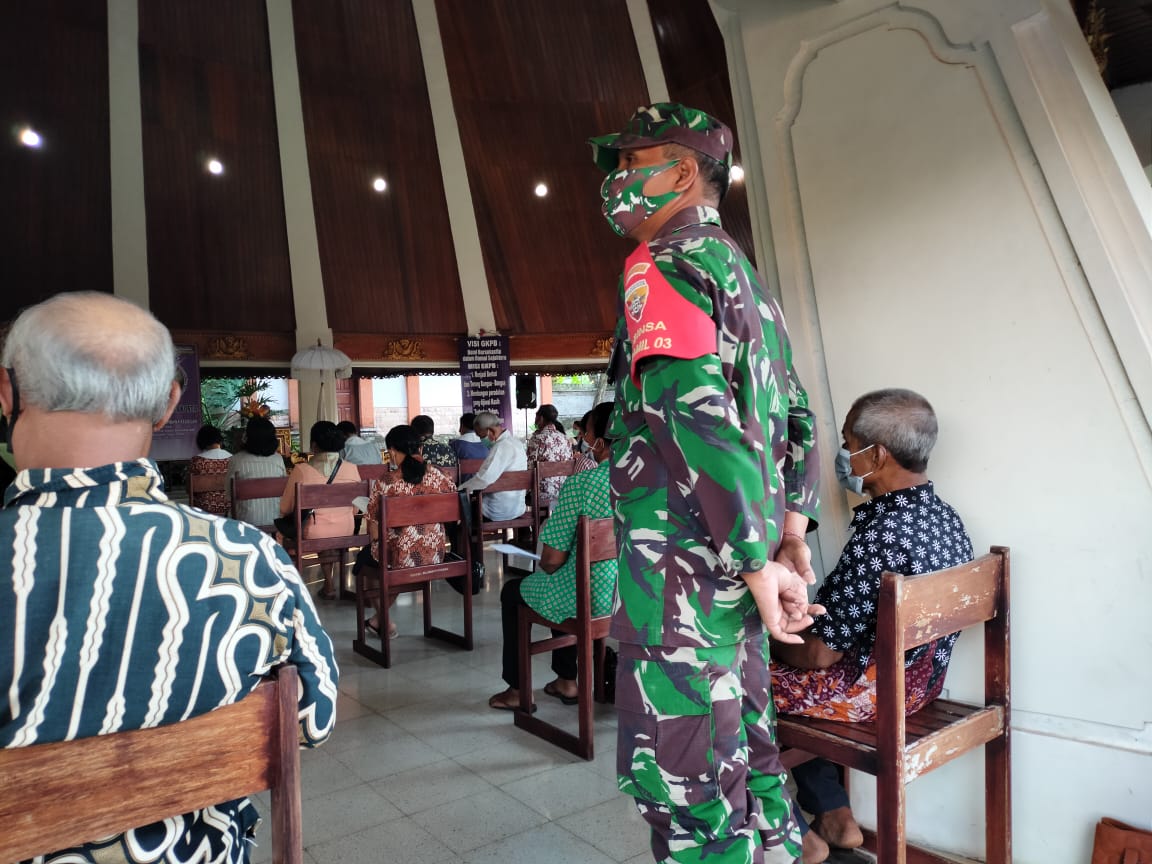 Babinsa hadir secara langsung untuk mengingatkan secara humanis kepada jemaat yang hadir agar dalam pelaksanaan ibadahnya tetap mematuhi protokol kesehatan. Selain melakukan pendisiplinan protokol kesehatan. Kehadiran Babinsa juga untuk membantu pengamanan Ibadah sehingga umat Nasrani dapat melakukan ibadah hari minggu secara khidmat, aman dan lancar.
