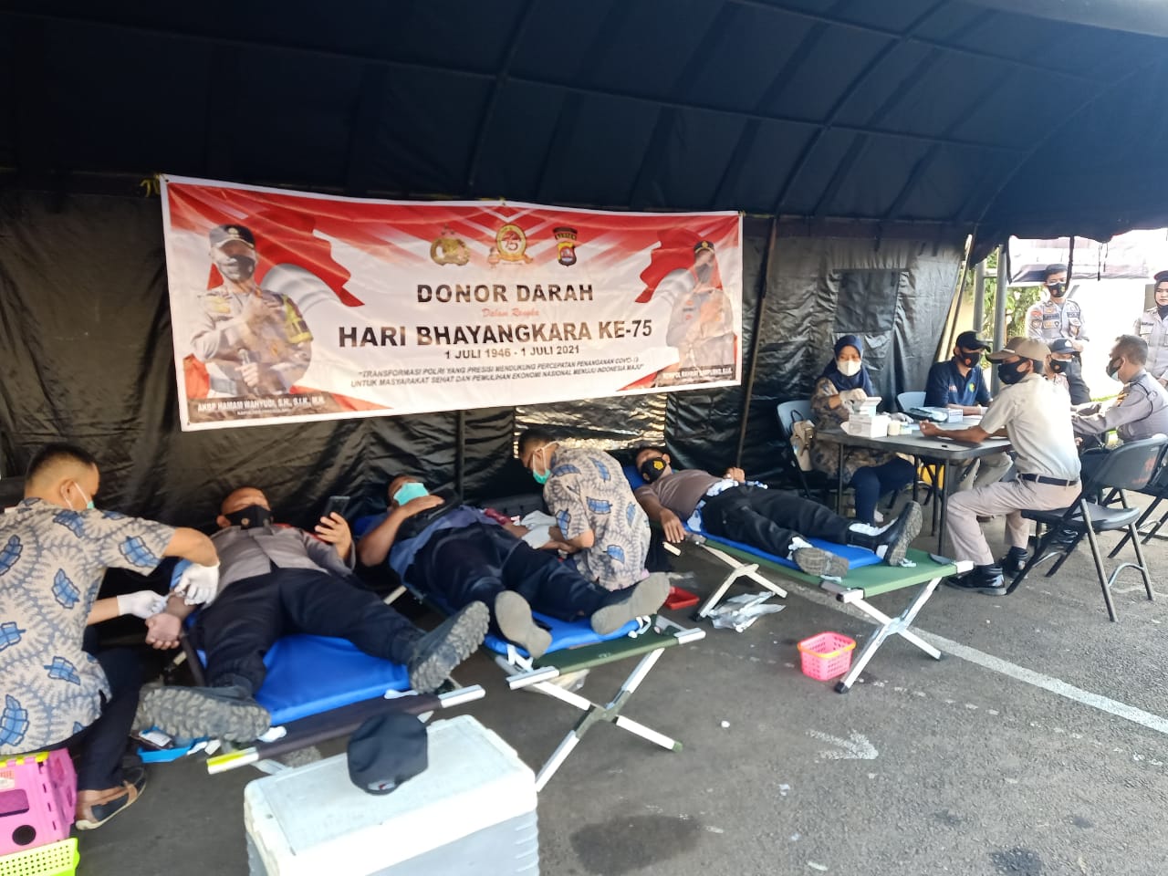 Portalindo.co.id, Pandeglang Dalam rangka memyambut Hari Bhayangkara ke – 75, Kepolisian Resor Pandeglang menggelar bakti sosial Donor darah yang di laksanakan di halaman Mako Polres Pandeglang .Jum,at 18/06/2021.