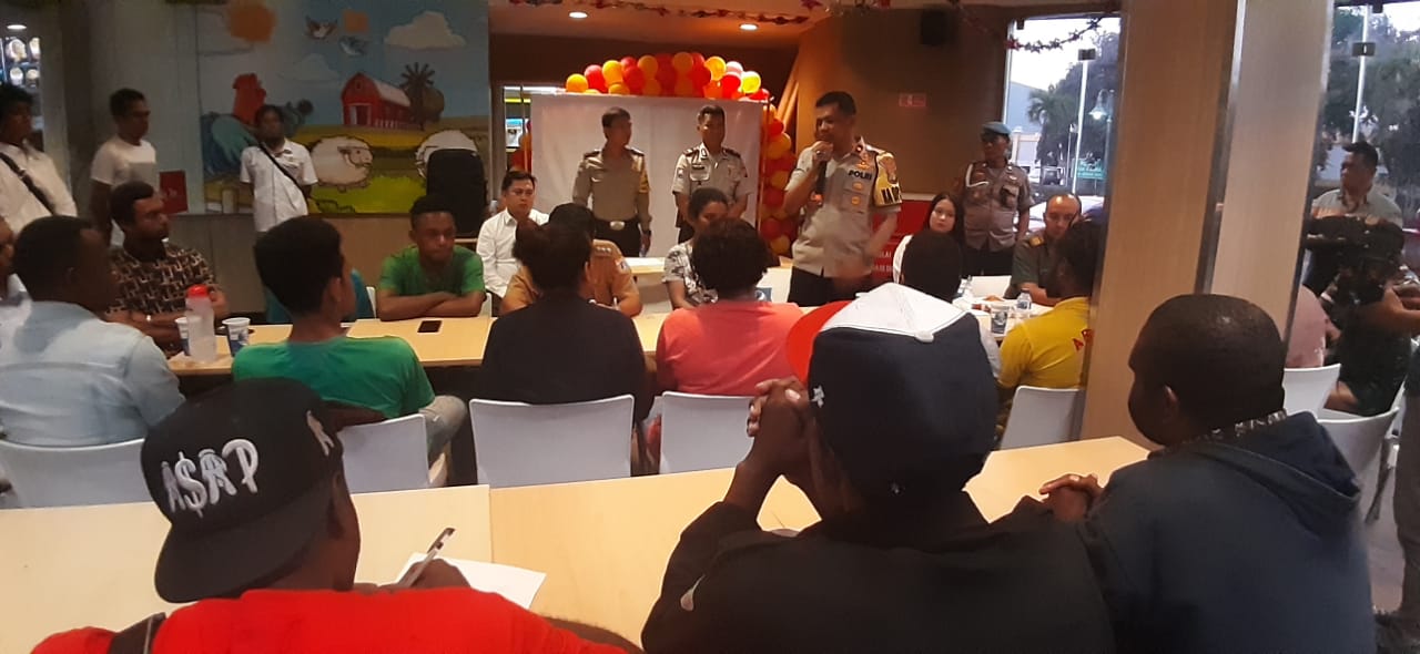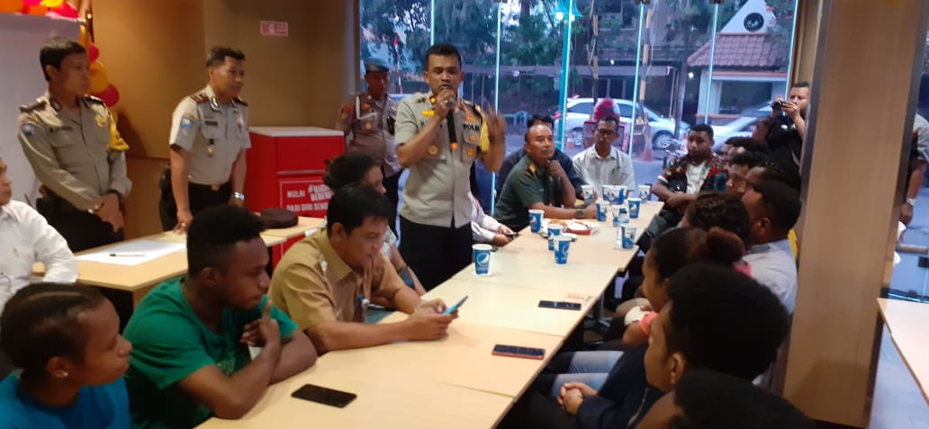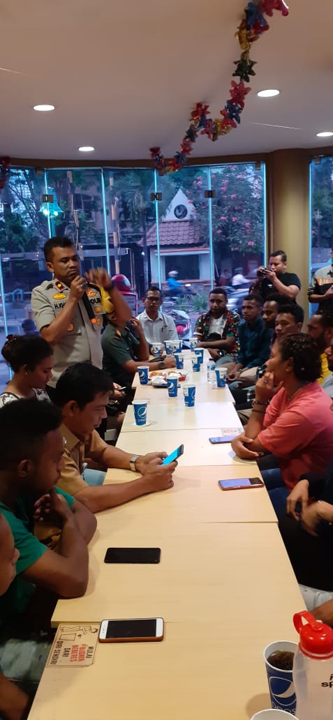 Dalam rangka menciptakan situasi Kamtibmas yang kondusif di wilayah hukum Polsek Cengkareng Polres Metro Jakarta Barat, Kapolsek Cengkareng Kompol H Khoiri SH MH bersama tiga pilar mengadakan tatap muka dan makan bersama dengan Mahasiswa STT PLN pengiriman asal Papua sebanyak 25 mahasiswa yang dihadiri Ketua Ricat selaku ketua Himpunan Mahasiswa Pengiriman Papua, di Rumah Makan Cepat Saji, Senin (19/08/19).
