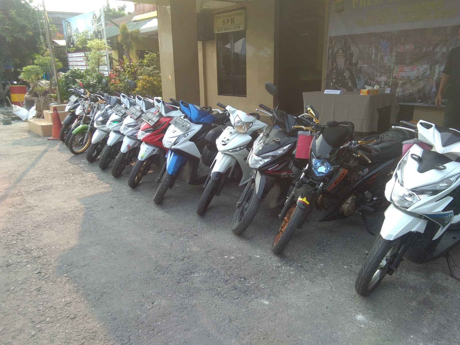 “Kami menghimbau kepada masyarakat jika memarkir sepeda motornya hendaknya memakai kunci ganda atau kunci tambahan, dan adapun bagi masyarakat yang pernah hilang sepeda motornya, siapa tau diantara motor yang kami amankan ini ada milik masyarakat yang pernah dicuri, namun silahkan datang ke Polsek Kalideres dengan membawa surat-surat kendaraannya seperti STNK dan BPKB”, Pungkas Kapolsek Indra.
