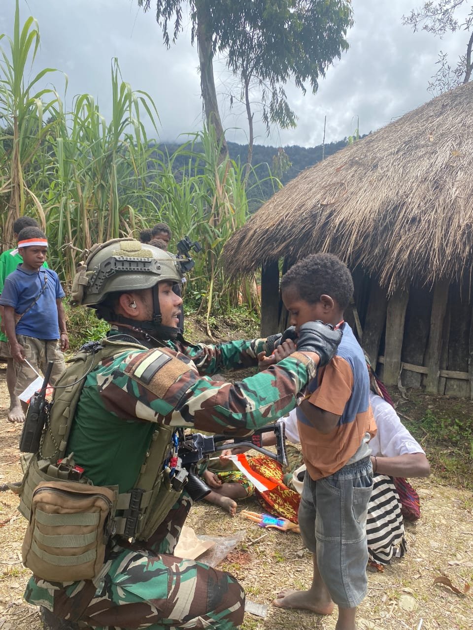 PORTALINDO.CO.ID | Dal Nduga, – Salah satu Satuan Jajaran Komando Operasi HABEMA di Papua yakni Satuan Tugas Batalyon Infanteri (Satgas Yonif) Para Raider 432/Waspada Setia Jaya Kostrad yang tengah melaksanakan tugas Operasi Pengamanan Perbatasan RI-PNG di wilayah Kabupaten Nduga, Provinsi Papua Pegunungan, melaksanakan Komunikasi Sosial (Komsos) dengan cara mengunjungi dan menyapa warga serta membagikan mainan serta baju gratis kepada anak-anak Kampung Grinbun, Distrik Dal pada Selasa, (20/8/2024).