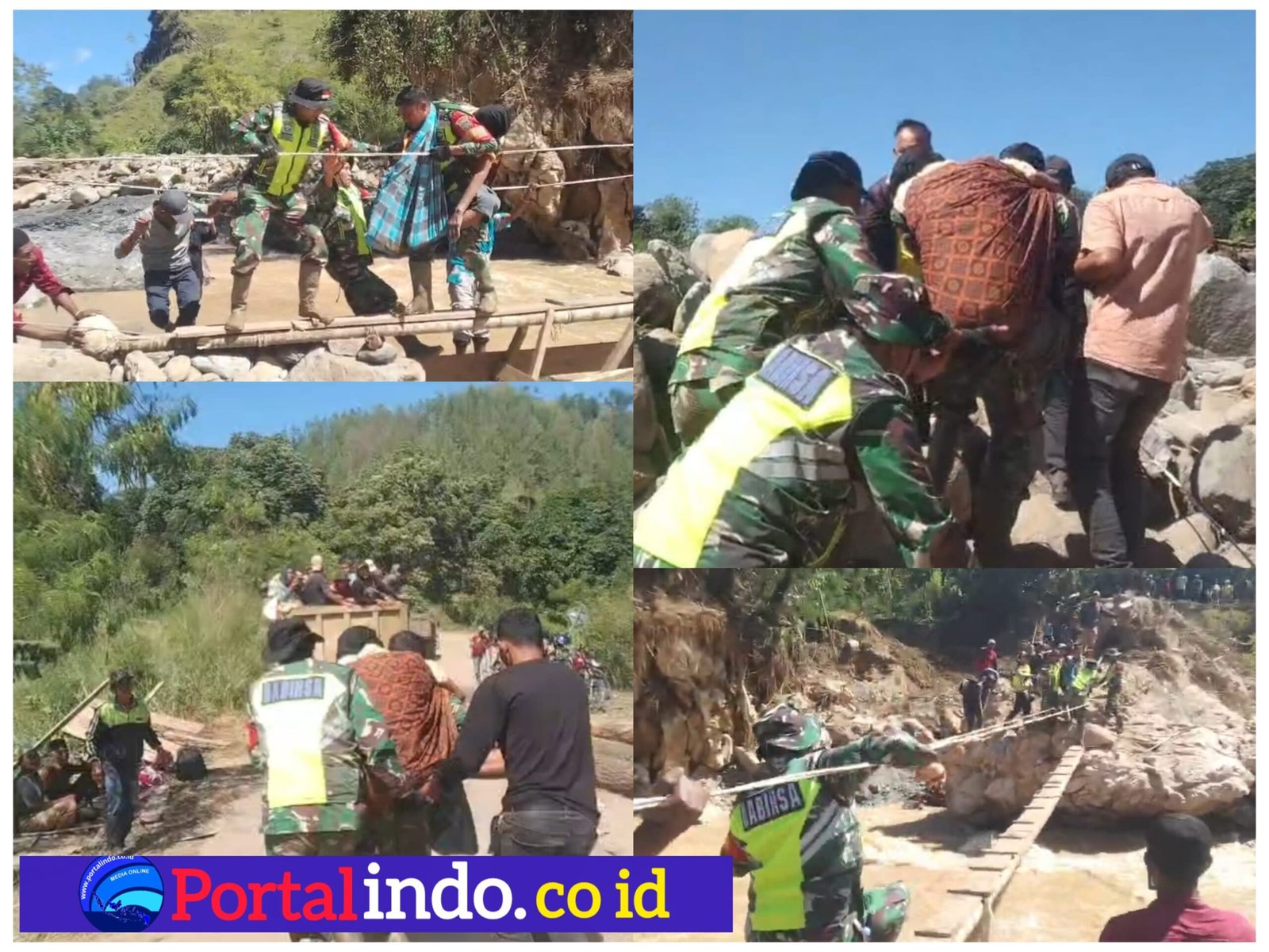 Personel Koramil 01/Bandar langsung bergerak menembus genangan air dan akses jalan yang rusak untuk mengevakuasi korban menuju RSUD Munyang Kute. Proses evakuasi dilakukan bersama masyarakat, mengingat medan yang sulit dan keterbatasan sarana transportasi di wilayah tersebut.