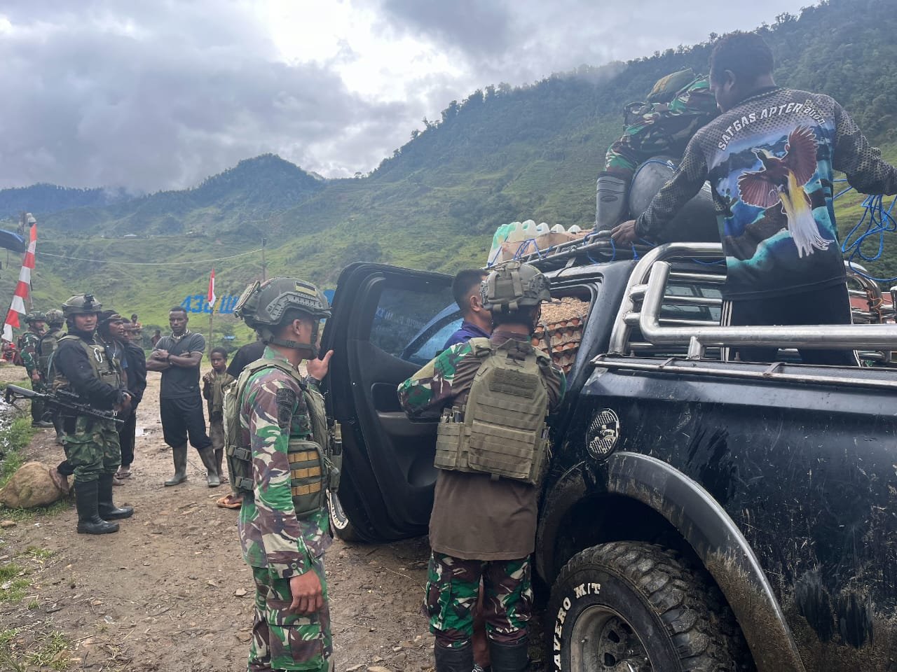 ” Itikad baik yang ditunjukkan oleh para Prajurit Pos Mbua disambut antusias warga yang dikoordinir oleh Tokoh Agama setempat atas nama Pendeta Johanes. Kegiatan bersama yang dilakukan dalam rangka menjaga keamanan adalah melakukan pemeriksaan terhadap setiap kendaraan beserta barang-barang yang diangkutnya di jalan raya penghubung antara daerah Nduga Atas dengan Distrik Mbua. Titik pemeriksaan berada di pintu masuk Kampung Mbua yang merupakan ibukota Distrik Mbua dan menjadi pintu gerbang masuknya lalu lintas kendaraan dari daerah Nduga Atas ke arah Nduga Bawah,”ujarnya.