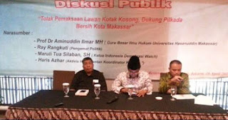 “Jika semangatnya untuk menerapkan prinsip-prinsip demokrasi secara murni, pasangan Ramdhan Pomanto-Indira yang digugat di PTTUN seharusnya tidak perlu muncul,” kata Maruli dalam diskusi ‘Tolak Pemaksaan Lawan Kotak Kosong, Dukung Pilkada Bersih kota Makassar’ di Bumbu Desa, Cikini, Jakarta, Selasa (10/4/2018).