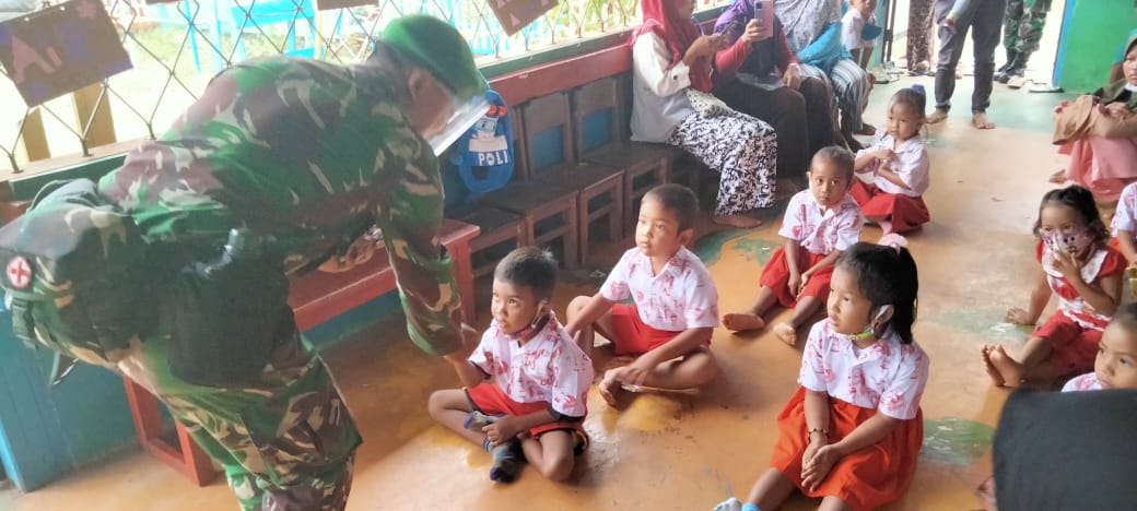 Portalindo.co.id, Keerom – Prajurit TNI Satuan tugas pengamanan perbatasan Negara Kesatuan Republik Indonesia – Papua Nugini (Satgas Pamtas RI – PNG) Yonif Mekanis 512/QY dari Pos Arso membantu mengajar di Paud Harapan Bangsa yang bertempat di jalan Kutilang Arso XIII Distrik Skanto, Kabupaten Keerom, Provinsi Papua. Kamis (19/03/2021)