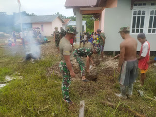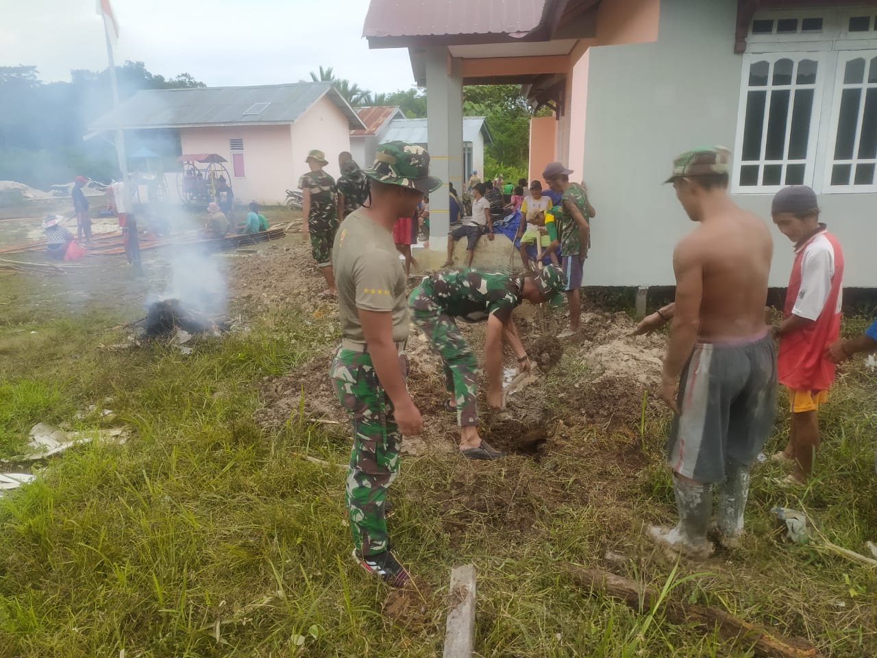 PORTALINDO.CO.ID – JAKARTA, Anggota Satgas Pamtas RI-Malaysia Yonif 144/JY melaksanakan karya bakti bersama masyarakat di Desa Sungai Senunuk Kecamatan Batang Lupar, Kabupaten Kapuas Hulu Kalimantan Barat.