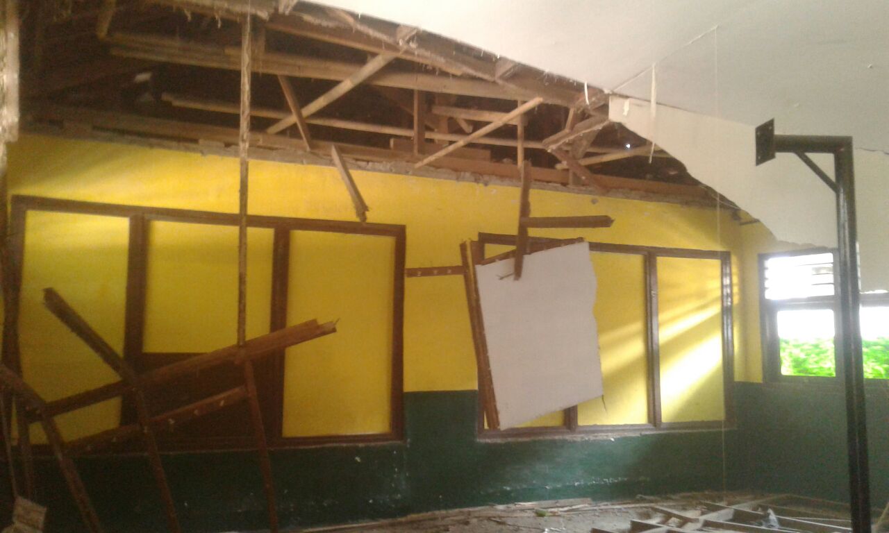 Menurut keterangan seorang guru yang nama nya tidak mau disebutkan menjelaskan bahwa ambruknya bagian atas sekolah tersebut pada hari kamis 10 mei 2018 pagi.