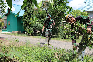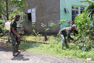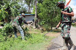 Menurut Prada Ade, penyemprotan ini dilakukan dengan menggunakan cairan racun untuk memetikan rumput agar rumput liar disekitar rumah Bapak Bambang mati sehingga rumah nyaman dipandang.