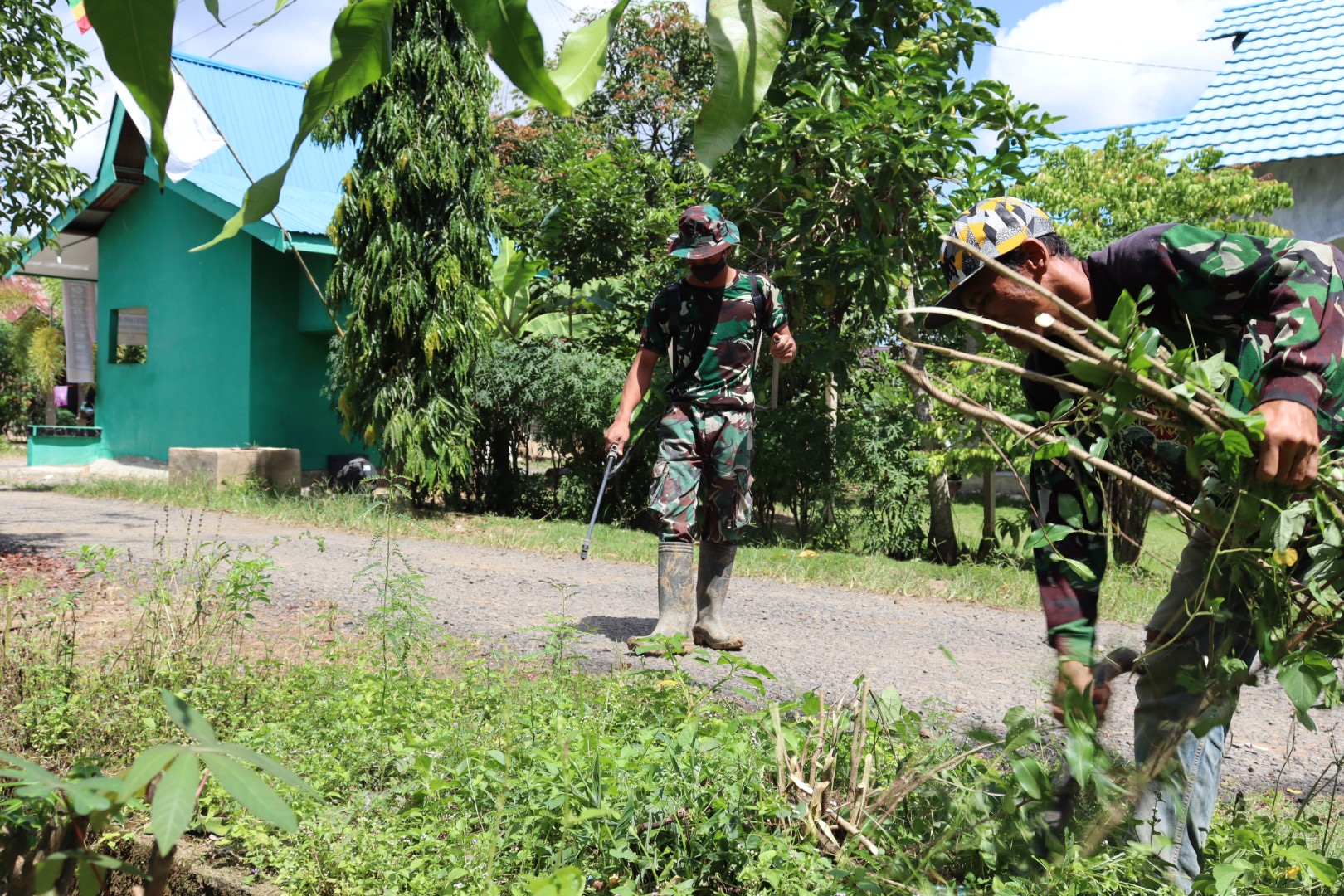 PORTALINDO.CO.ID, TAPIN.agai wujud kepedulian terhadap lingkungan sekitar, anggota Satgas TNI Manunggal Membangun Desa (TMMD) Ke 111 Kodim 1010/Tapin,membantu warga dalam pembersihan lingkungan rumah.