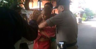 Polisi yang tiba di TKP dengan sigap mengamankan pelaku saat sedang berjalan kaki tak jauh dari TKP.