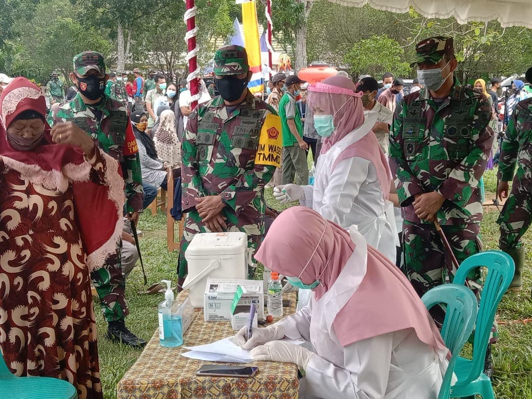 PORTALINDO CO.ID – TAPIN. Sukseskan program pemerintah dalam pencegahan Covid-19, Kodim 1010/Tapin bersinergi dengan Dinas Kesehatan berhasil suntikan Vaksin kepada Masyarakat.
