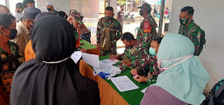 Plh. Danramil 1002-03/Haruyan Peltu Henri Murpianto mengatakan kegiatan serbuan vaksinasi ini dilaksanakan di dua tempat yaitu Puskesmas Barikin sebanyak 185 orang dan Puskesmas Haruyan 208 orang bertujuan untuk mendukung program pemerintah dalam membentuk kekebalan kelompok (herd immunity) melalui program vaksinasi Covid-19.